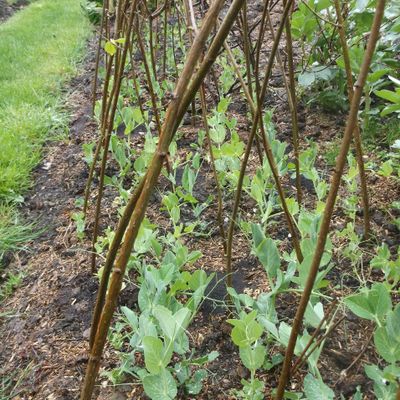Erect pea-sticks and bean supports, prune cherry and plum trees. Keep an eye on pests – slugs/snails, aphids